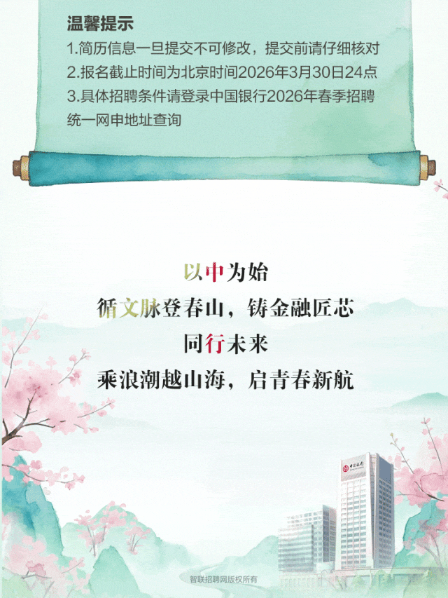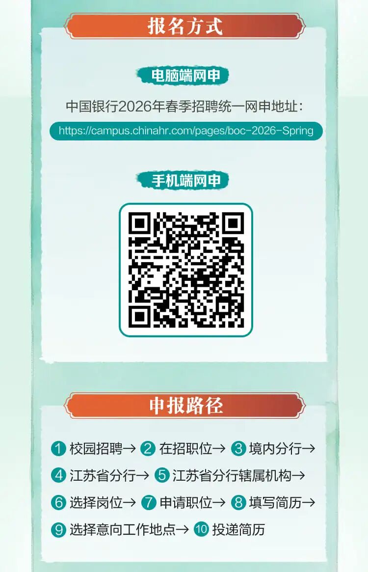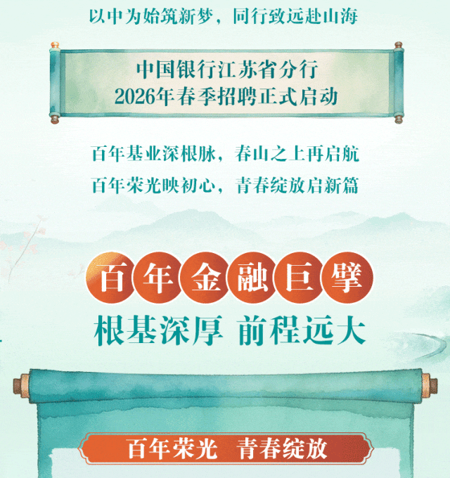 中国银行江苏省分行2026年春季招聘正式启动!